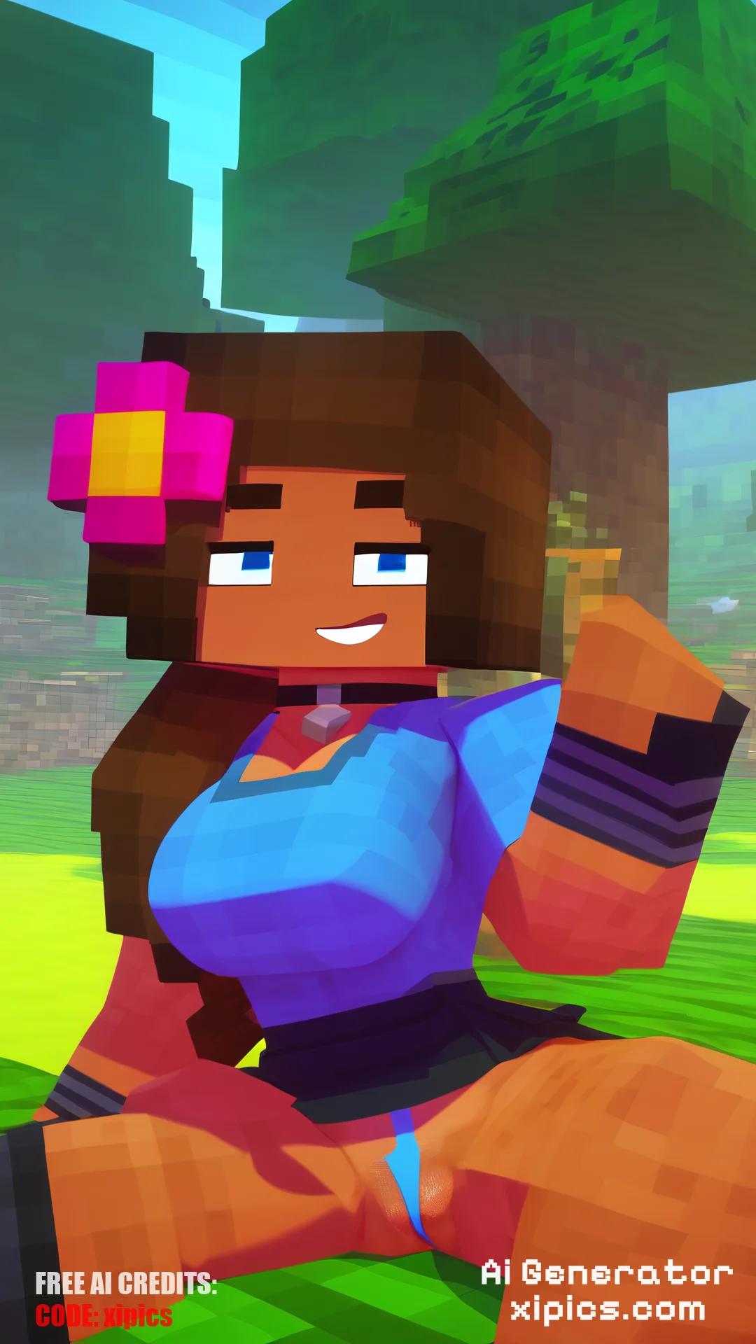 score_9, score_8_up, score_7_up, score_6_up, best quality, hd, 8k masterpiece, 1girl, jenny bell, hair flower, short hair, blue eyes, brown hair, pleasured face, thick eyebrows, wear school outfit, wear g string, choker, sitting, spread legs, looking at viewer, background Minecraft map , Minecraft trees, Minecraft, Minecraft Style, pocahontas, black hair, long hair, black eyes, dark skin,