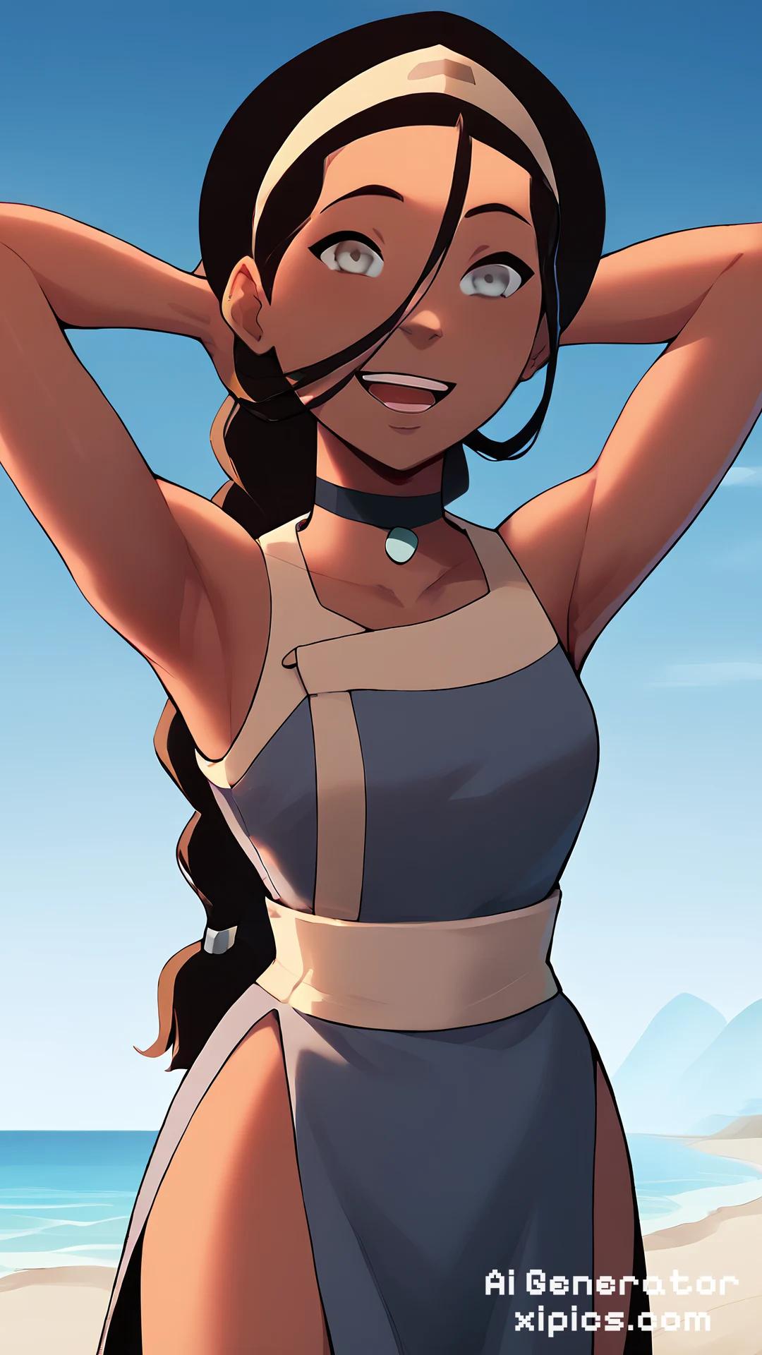 Animation score_9, score_8_up, score_7_up, score_6_up, score_5_up, score_4_up, BREAK, 1girl, pocahontas, black hair, long hair, black eyes, dark skin, G Thong, hands behind head, one-piece swimsuit, open mouth, smile, happy, solo, looking at viewer, sea, sand, blue sky, tropical island background, pocahontas, black hair, long hair, black eyes, dark skin, 1girl, toph, bangs, black hair, blind, grey eyes, hair between eyes, hair bun, hairband, short hair, 1girl, katara, brown hair, braid, blue dress, blue eyes, dark skin, choker, Naruto, Hinata, 1girl, margesimpson, blue hair, afro, bare shoulders, yellow skin,