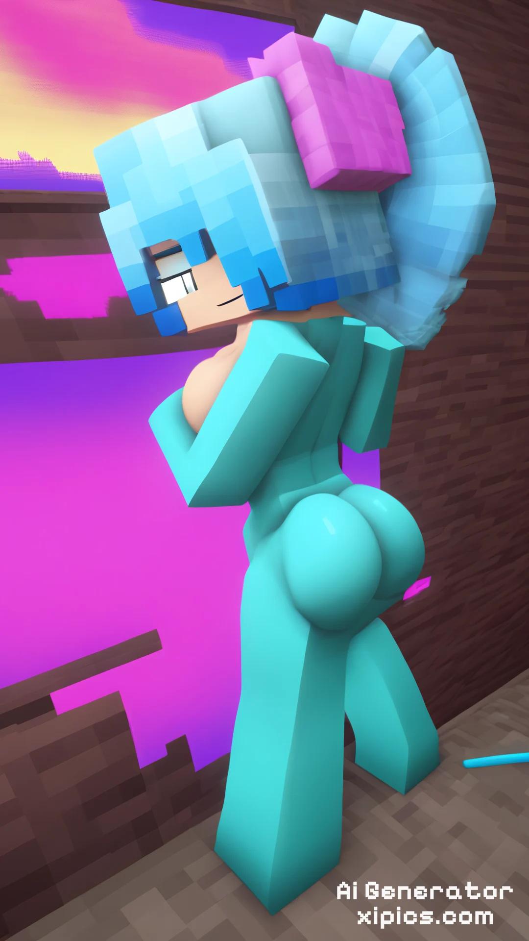 3d render, HD, girl painting, covered in colorful dry paint, paint splashes all over body, blinking an eye, shiny skin, artistic, dynamic angle, full body, body painting, room covered in paint splashes, paintings in the background, from behind, nude, holding a paintbrush, big paint splashes, 1girl, Feathered haircut, boobs, chest, Stocky body, silver eyes, Blue hair, chromatic aberration, colorful, bright colors, Minecraft, Minecraft Style,