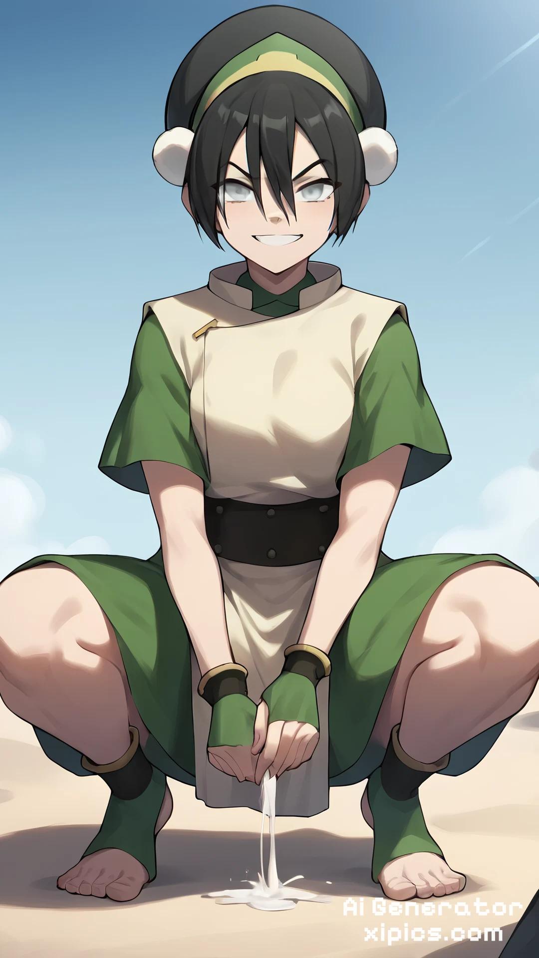 score_9, score_8_up, score_7_up, score_6_up, score_5_up, score_4_up, BREAK, source_anime, 1girl, toph, bangs, black hair, blind, grey eyes, hair between eyes, hair bun, hairband, short hair, short sleeves, tunic, chinese clothes, baggy capri pants, squatting, smug, looking at viewer, outdoors, blue sky, rock, dune, sand, cumflation , 1girl, toph, bangs, black hair, blind, grey eyes, hair between eyes, hair bun, hairband, short hair,